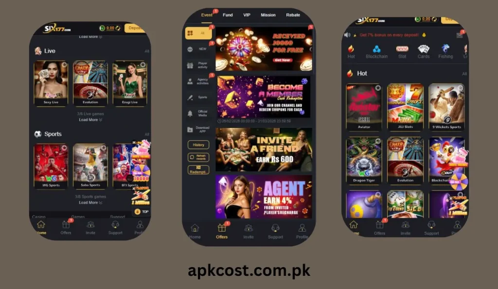 Six177 Game free download is the best earning game know trending in the casino world with it multiple games and users are enjoying and earning money in the daily basis. The games has no any difficult thing to understand it is simple and easy to play and you can earn easily.